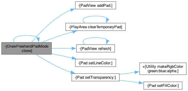 Finalizes the freehand path: closes it, restores pad styling, adds the new pad to the play area, and clears temporary state.