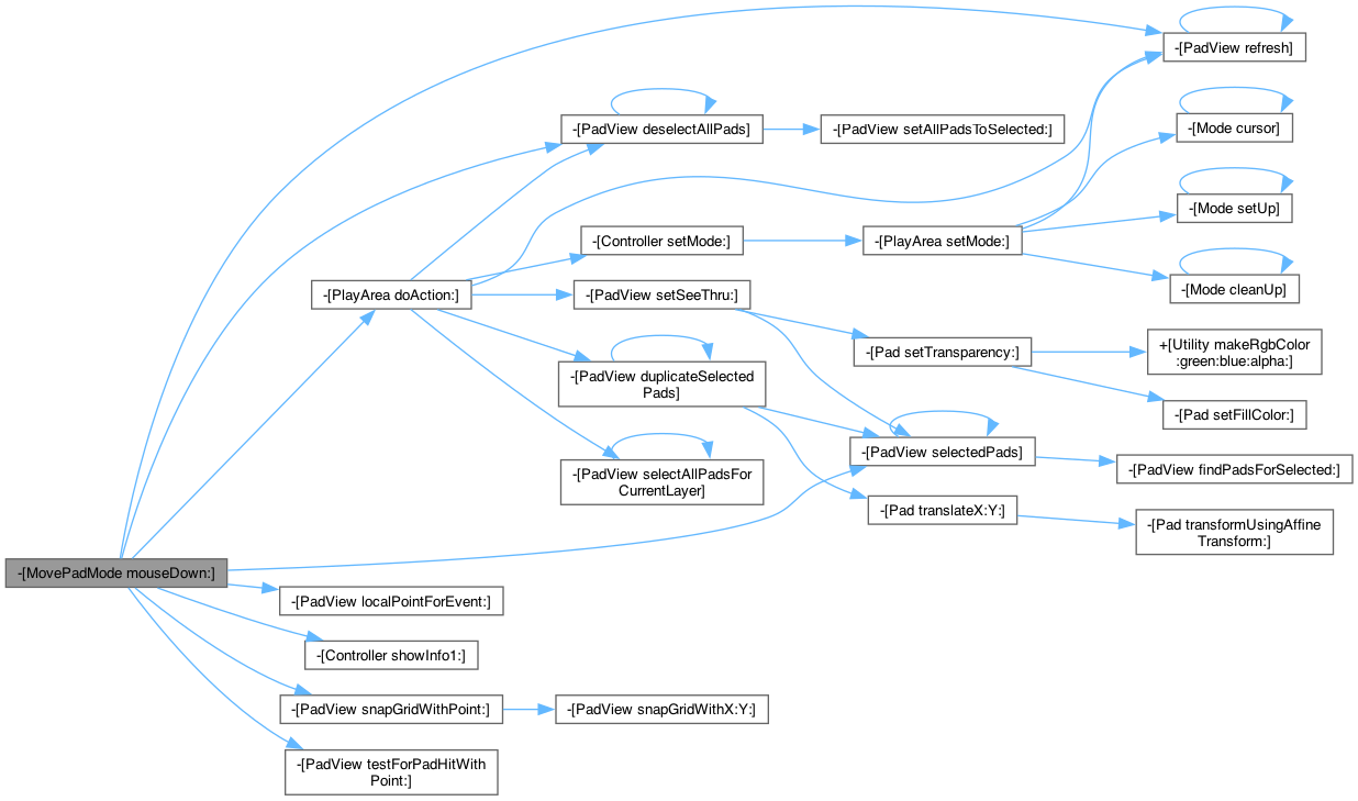 This mode responds to mouse and key events from the PlayArea to translate pads or update the current selection. It also defines the cursor and manages temporary state.