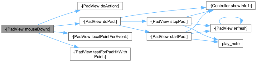 Handles mouse down: tests for pad hit and triggers action or playback.